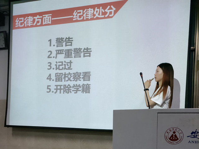 开启遵规新篇章。辅导员首先带领员工谨记校规校级,强调“四项禁令”。没有规矩不成方圆,经过辅导员的悉心教诲,同学们深刻认识到遵纪守法的重要性,树立起尊重校规校纪的自觉性。不破纪,不乱纪,将用自身行动诠释师大学子的遵规风采。
