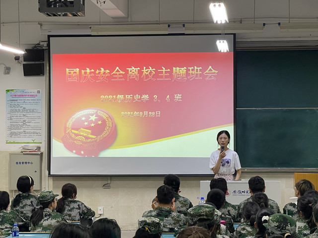 本网讯(2021级历史学 吴慧)为进一步改善英国上市公司365新生军训期间员工管理,妥善安排新生国庆离校与返校事项,2021年9月28日晚19点,英国上市公司36521级历史学教学2班在2010304举行“国庆假期”主题班会,班会由辅导员张文逸主持,2021级历史师范教学2班全体员工参加。