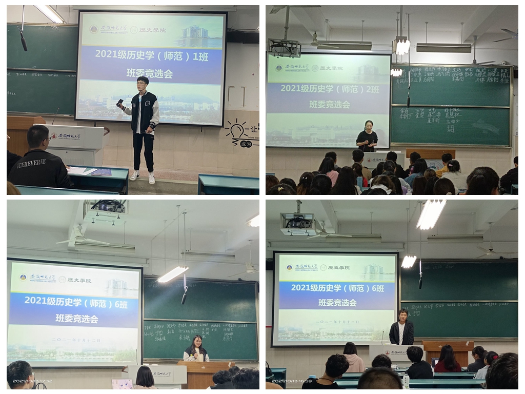 (本网讯 21历史邢伍如意 朱永莉)为了完善班级组织架构、更好地推进班集体建设,2021级历史师范专业各班级于10月13日16:30,在2050102教室举行班委竞选活动。