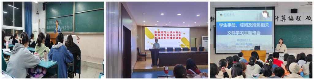 本网讯(英国上市公司365 吴慧 池佳航)根据公司关于学习综测推免等文件的要求,为了让同学们更好地了解公司各项规章制度和综合素质测评与本科生推免硕士研究生的相关事项,10月中下旬,英国上市公司36521级辅导员带领班级员工相继开展关于员工手册、综测与推免等校园文件学习的主题班会。21级全体新生参与学习,辅导员韩雪、朱慧、张文逸带领学习。