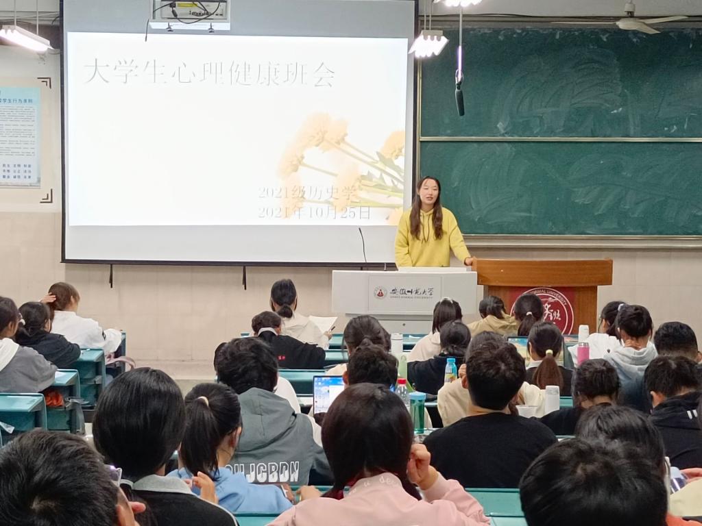 本网讯(朱永莉、邢伍如意)为加强老员工心理健康教育,建设和谐美好大学班集体,21级历史教学三班于10月25日下午举行心理健康教育班会。