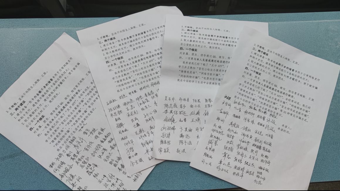 防范于心,反诈同行。本次班会在全体师生的共同努力下圆满结束了,但防范诈骗的步伐却不能停止。只有坚持反诈骗入脑入心,时刻敲响警钟,才能筑牢防诈反诈的坚实堤坝,收获更加美好的大学时光。