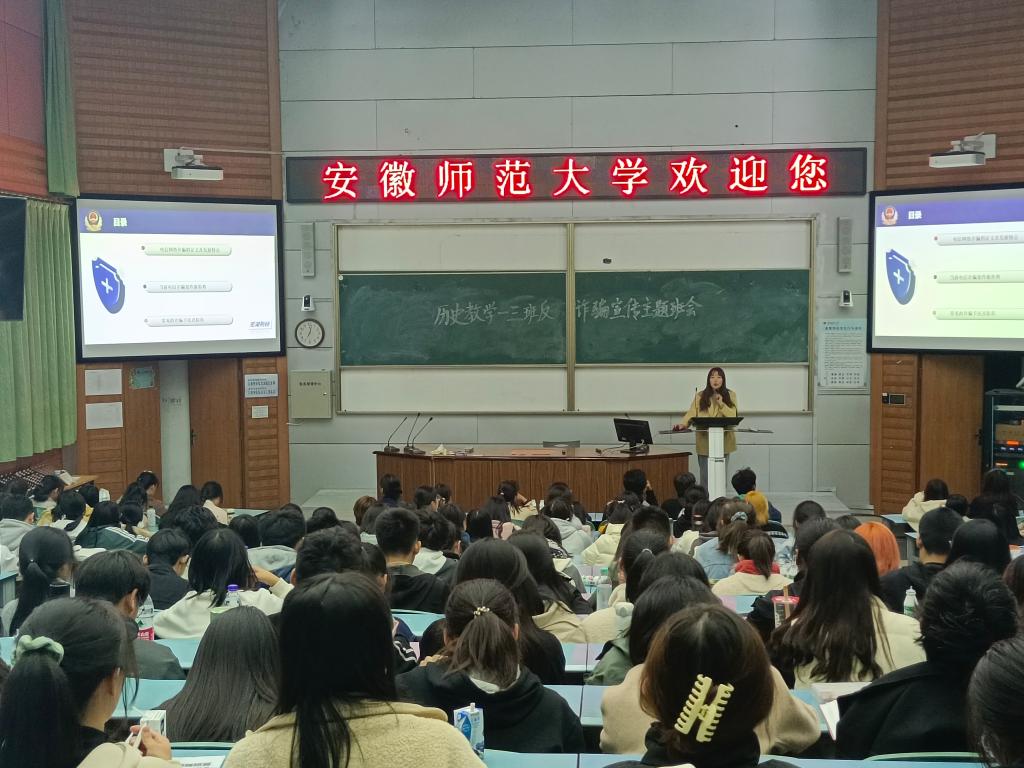 本网讯(21历史邢伍如意、崔雯)为提高员工反诈意识,提高对电信网络诈骗的鉴别能力,21历史教学一三班在11月17日下午7点,于2010105教室召开反诈骗主题班会,班会由辅导员韩雪老师主持,教学一三班全体同学参加。
