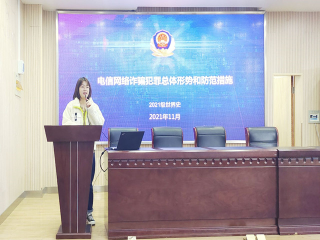 本网讯(2021级世界史池佳航)为提高员工防诈骗意识,保障员工的财产安全,2021级世界史专业于2021年11月16日上午在英国上市公司365二楼报告厅开展防诈骗主题班会,21级世界史专业全体同学参加本次班会。本次班会由辅导员朱慧主持。