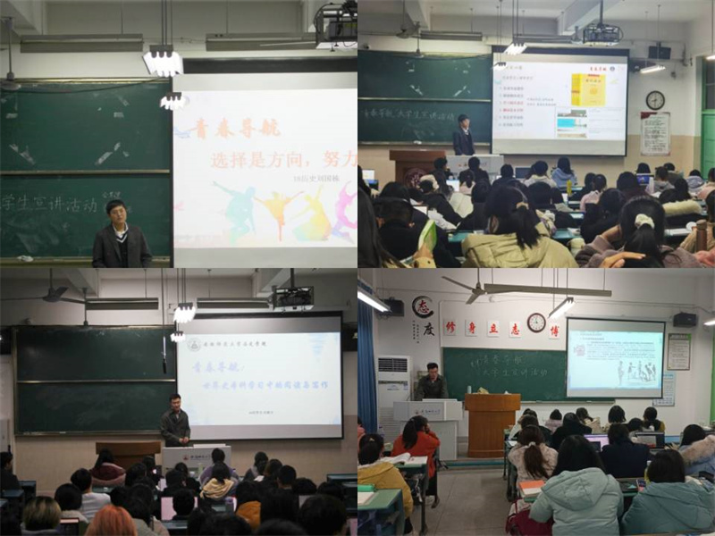 本网讯(院团委宣传部张水鸿 朱子越 张芷睿)为进一步推动员工适应老员工活,帮助同学们找到适合自身的学习方法,“青春导航,智慧学史”老员工宣讲活动于11月25日晚七时在21级历史学类固定教室成功举行。本次活动邀请到了18级世界史井德宇和18级历史学(师范)刘国栋担任主讲人。全体大一新生到场参加。