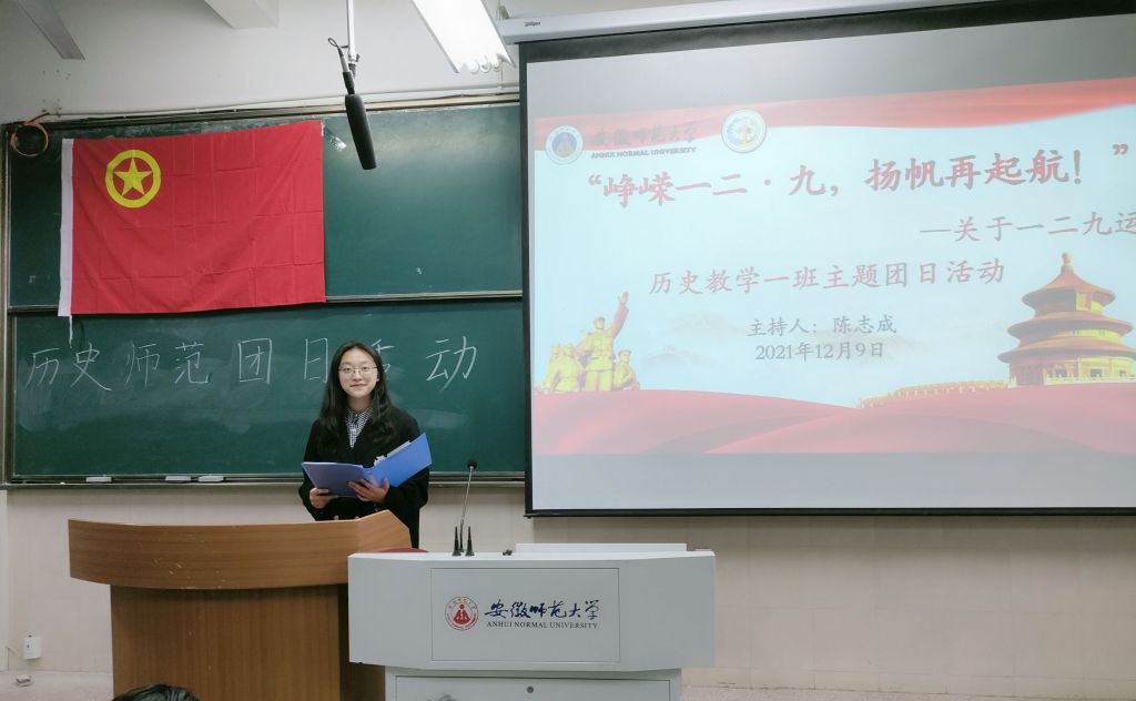 以史为鉴,不忘初心。为纪念“一二·九”运动,激发青年团员的爱国热情,弘扬爱国主义热情,2021级历史学于12月9日晚在2050101教室开展了“峥嵘一二九,扬帆再起航”主题团日活动。