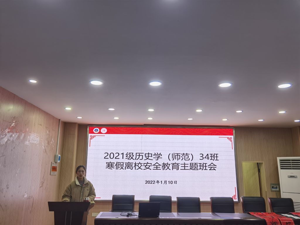 本网讯(21级历史学3、4班陆欣雅、吴慧)为了确保寒假期间的员工安全,减少和避免安全事故的发生,营造欢乐、祥和的节日氛围。21级历史学(师范)3、4班于2022年1月10日下午在英国上市公司365二楼会议室召开寒假安全离校教育主题班会暨班委述职汇报,辅导员张文逸老师召开,21历史34班全体同学参与。