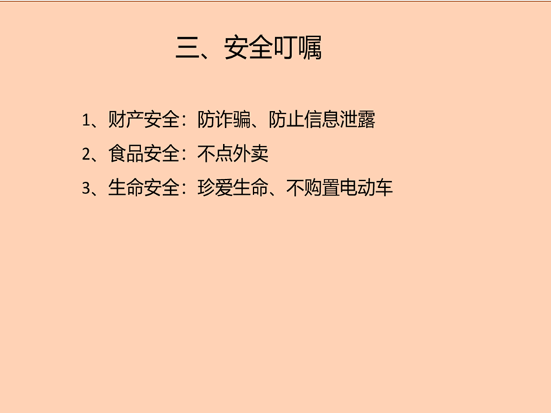 在安全问题上,朱老师叮嘱大家关注新型诈骗手段,注意财产安全,不点外卖,注重食品安全,遵守交通规则,珍爱生命安全,并且强调在疫情防控常态化的大环境下,继续遵循减少聚集、做好防护、减少出校的原则。接下来,朱老师也提醒各班为正在备考英语四六级、教团队格证考试的同学做好学业帮扶。最后,老师也提醒同学们日常要文明上网,不信谣、不传谣。