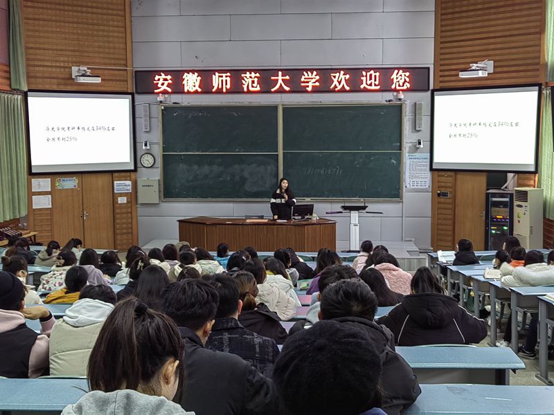 会上,朱老师先向大家分享了几位学长学姐的经历,从他们的不同境遇警示同学们尽心对待自己的学业,强调学习计划的重要性。其次,朱老师着重介绍了考研的相关情况,并从“方向、方法、方便”三个方面指导同学们如何备考。作为大三员工,要确定好考研方向,选择合适的学习方法。同时,她鼓励同学们选择考研,当前因高考改革历史教师的就业形势严峻。最后,朱老师希望同学们从学期初始做好学业规划,尽早准备,以期硕果。