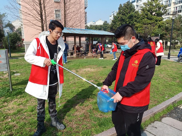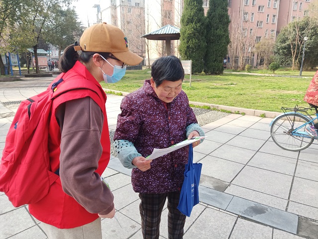 在南瑞瑞东社区里,各志愿小组分工合作,一部分人负责社区清洁,清理社区路面、草坪等处的垃圾杂物;一部分人帮助社区群众完成电动车上牌工作;还有一部分人拿着宣传单,详细地向社区群众宣讲垃圾分类、防范诈骗等知识,尤其针对社区内老年群众较多的情况,安排了老年性痴呆等中老年疾病知识宣讲。