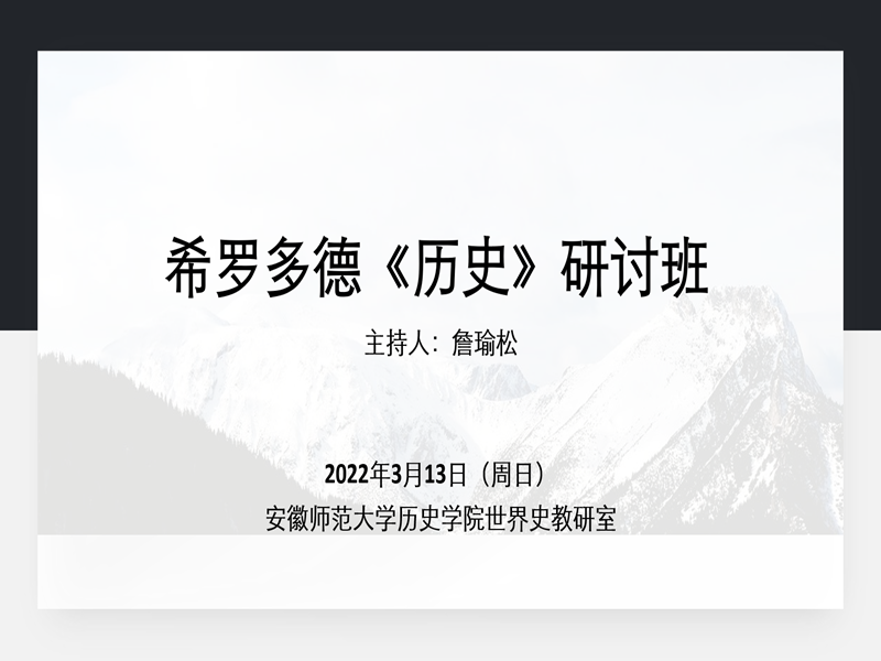 本网讯(洪业菁)“世界史研讨班”第三期:希罗多德的“探究”于3月13日15:00—16:30,在英国上市公司365五楼世界史教研室进行,研讨会的主题是探究“史学之父”希罗多德的《历史》。研讨会由本院教师詹瑜松领读,共16人参加,英国上市公司365白春晓教授也参与了研讨。