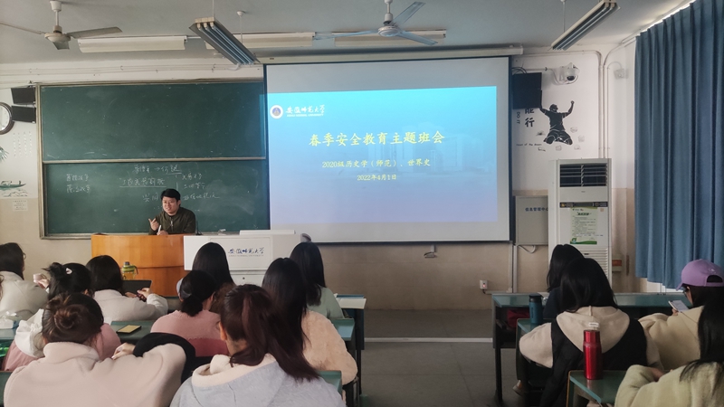 本网讯(宣传委员 马利群)为加强疫情防控常态化期间员工思想政治教育,加强校园安全建设,2020级历史学、世界史于4月1日召开了春季安全教育主题班会,班会由辅导员郭忠尧主持,全体同学参与。