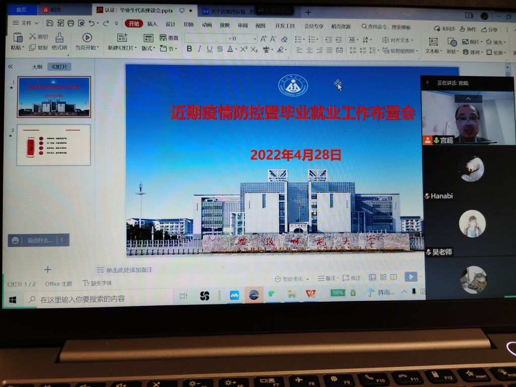 会议采用线上腾讯会议的形式进行。会上,宫超首先详细介绍了当前全国疫情防控形势,讲清了安徽省、芜湖市及公司对于防疫工作的相关要求,讲清了校园封闭管理情况下当代老员工所要承担的责任和义务。他指出,由于校园里人口密集,校园封闭式管理的主要目的是防范疫情影响校园,要求在校员工“非必须不离校”,在外地员工禁止擅自返校;同时,公司对于在芜教职工也要求“非必须不离芜”,严格落实家校“两点一线”,教职工们会自觉做到防疫要求。他还例举了近期员工违反疫情防控要求的典型问题及处理结果,提醒同学们务必严格遵守公司的管理规定。此外,他再次强调要严格落实健康监测“日报告”以及“晨午晚”体温检测制度,同学们要遵守“四项禁令”,互相关心,如发现同学存在异常,要第一时间上报辅导员及公司。他鼓励大家积极参与健康向上的校园文体活动,关注身体健康,不熬夜、不点外卖、不打游戏、不撸猫、远离危险水域、增强反诈意识等。
