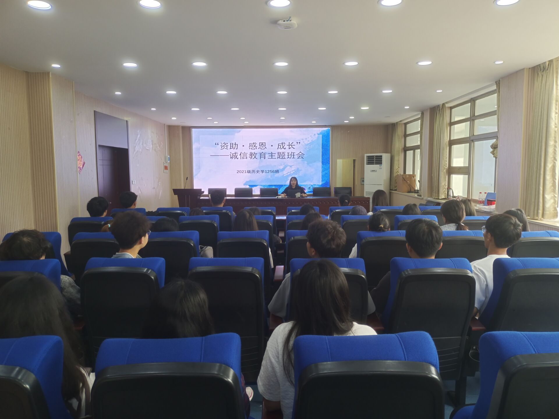 在会上,由彭家旺同学讲述的两个党史诚信故事作为开端,韩雪老师为全体同学普及了征信的含义,让同学们意识到个人信用记录的重要性。同时,韩雪老师提倡贫困生同学们应勤俭节约,同时怀有感恩之心。最后,韩雪老师指出在现有社会环境下,同学们更应该抓住机会增强实力,成为一个更优秀的、对社会有贡献的人。