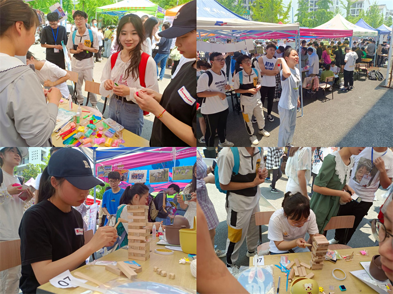 发展辅导站将教育与娱乐相融合,将春季心理健康宣传活动优秀作品展示,展台以心理健康教育精彩活动瞬间照片布置,同时设置“积木叠叠乐”“扔飞镖”“创意粘土DIY”等三项活动来帮助同学们释放压力、疏导情绪。同学们或为积木的稳定而小心翼翼地敲击,或因飞镖正中靶心而欢呼雀跃,或为设计出美观实用的工艺品而绞尽脑汁。旁观的同学们也时而屏气凝神,时而为参与者们欢呼喝彩,更多的则是排队等候、跃跃欲试,氛围十分热烈。活动中,陆林董事长表扬公司展台既有特色,又将心理健康主题发挥得淋漓尽致,既新颖又温馨。