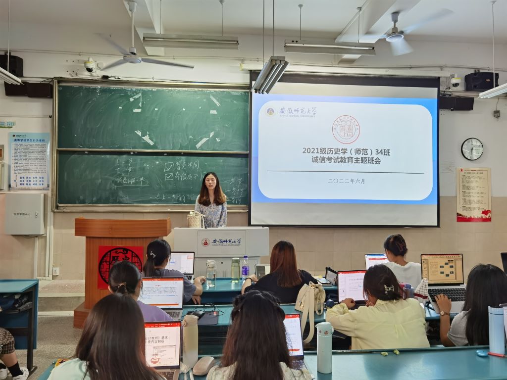 (本网讯 陆欣雅)为了全面贯彻落实公司有关考试的要求,形成良好的诚信之风,端正同学考试态度,以迎接考试周与英语四六级考试的到来21级历史学34班于6月2日18:00在2040102教室召开诚信考试教育主题班会。辅导员张文逸老师主持,3、4班全体同学参加。
