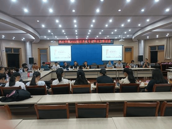 本网讯(18级世界史 贾彦琳)2018级世界史一班于2022年6月6日开展了毕业生茶话会活动,会议由辅导员尹蒙蒙老师主持,韩家炳、徐尚平、奚庆庆、王闯闯、詹瑜松、赵辛阳老师及全体同学参与。
