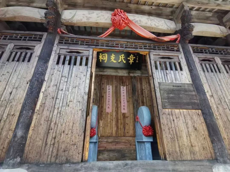 团队第一站前往宣城的家朋乡,在当地老党员的带领下,依次上山鸟瞰山下,一幅生机盎然的梯田景象,白墙黛瓦点缀在郁郁葱葱的树木田埂之间,蓝天白云绿树粉花一览无余。接下来团队参观了三个当地保存较好的祠堂,分别是章姓、许姓和高姓祠堂,这些宗族延续良久,如章姓最早可以追溯到姜太公的后裔。入户即可见大约一米见方的小水池,据当地人介绍,这是表示“肥水不流外人田”之意。沿着贯通乡村的河流向上走,一座巍峨的牌坊耸立于路旁,节妇坊后就是著名的许氏宗祠,始建于明洪武年间,内部还有保存完好的一台花轿,据当地村民介绍,在旅游旺季还会在祠堂内举行一些活动。第一天的行程临近结束的时候,团队到达了许家朋纪念碑园。从园内众多文字介绍中,团队知晓:家朋乡得名于抗美援朝烈士许家朋,九年的革命生涯,使许家朋成长为一名优秀的战士,在危急时刻,他毅然用胸膛堵住敌人的机枪口。
