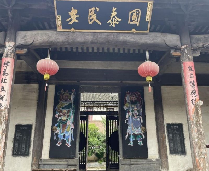 随后,团队来到三阳村探访洪氏宗祠,祠堂高悬的“国泰民安”让人直观感受到洪氏家族对国家和人民的热爱。据了解,三阳洪氏家族在抗战时期就有着支持红色革命、支持中国共产党的传统。团队随后走访了洪雪飞戏曲艺术陈列馆以及洪谦先生的故居,洪氏仁本堂现成为红色三阳展示馆,馆中的柱子上张贴着“为有牺牲多壮志,敢教日月换新天”的铮铮誓言,彰显着洪氏一族跟随革命脚步、改换新天地的坚定信念。