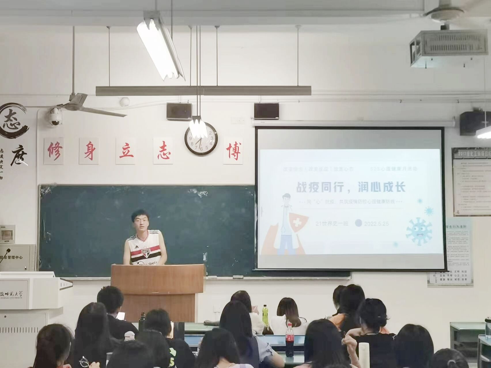 本网讯(宣传委员 池佳航)为关心疫情当下老员工心理健康,缓解焦虑情绪,同时响应公司“5.25心理健康月”系列活动的号召,2021级世界史专业于2022年5月25日晚在教学楼2070209开展“战疫同行,润心成长”主题心理健康活动,本次活动由班级心理委员张冠华主持。