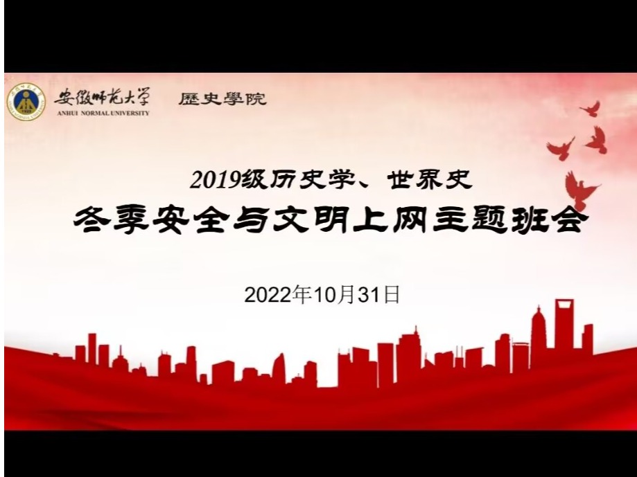 本网讯(文、图/刘燕杰)为确保员工冬季安全用电,增强在校员工的安全意识,同时宣传文明上网观念,倡导文明新风,10月31日晚,辅导员朱晓华老师主持召开2019历史学、世界史冬季安全和文明上网线上主题班会,全体同学参与。