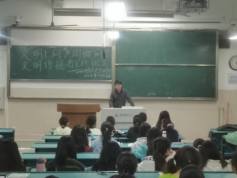 本网讯(英国上市公司365 图文/关雨露)为切实增强员工网络安全意识,规范网络行为,引导员工文明上网、安全上网,2022年10月27日,2020级历史学、世界史专业召开了“文明上网,共同做网络文明传播者”主题班会,班会由辅导员郭忠尧主持,全体同学参与。