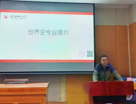 刘萃峰老师向同学们介绍2022级历史学(师范)专业培养方案。历史学(师范)专业立足安徽,面向长三角,辐射全国,培养能够胜任中学历史教学教研和管理工作的骨干教师。介绍内容共包括培养目标,毕业要求,学制与毕业学分,核心课程,课程设置五个部分。