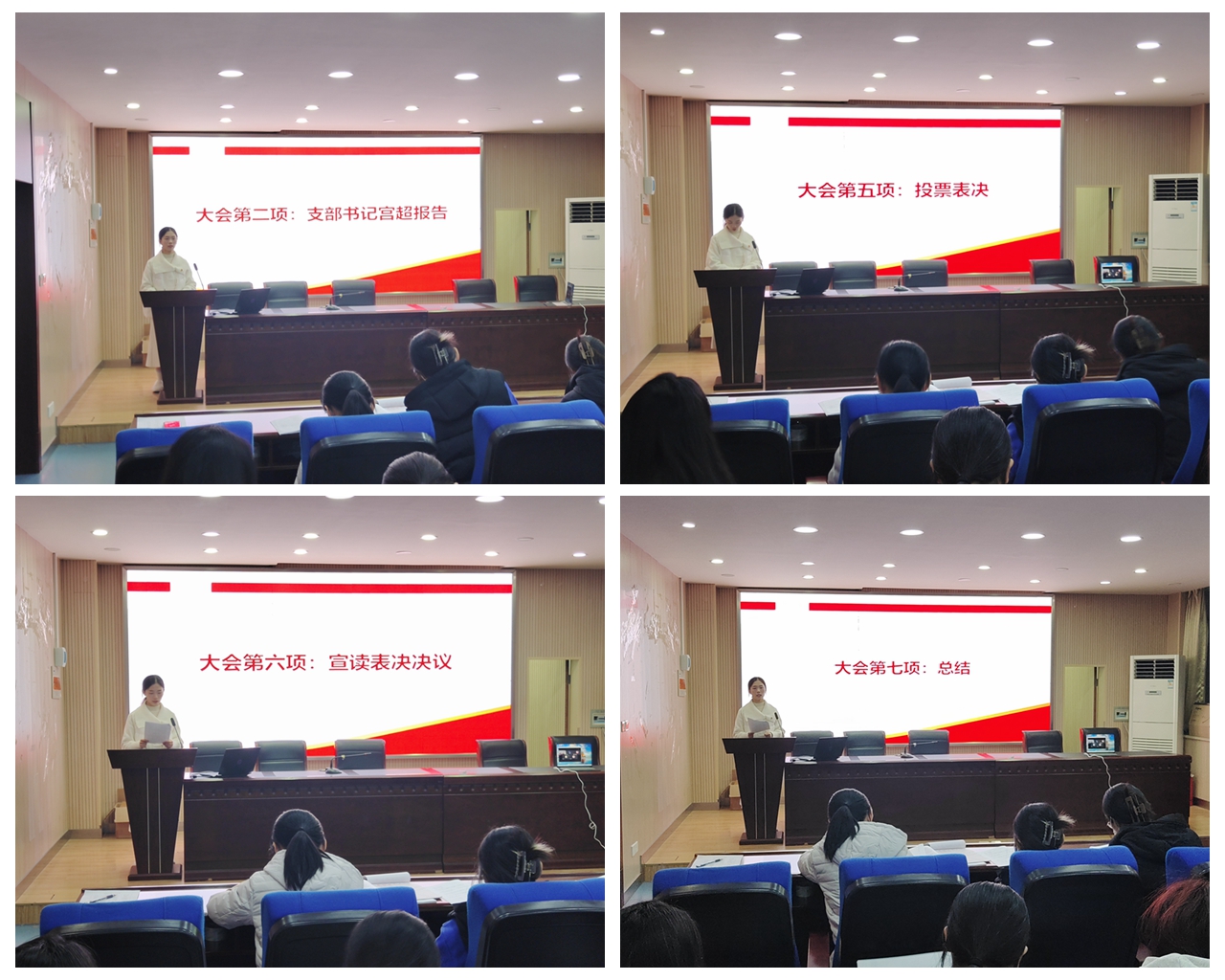 按照党员转正程序,苗婕妤等10名同志分别向党组织汇报预备期以来的学习、工作和生活情况,总结成绩,反省不足。与会党员对苗婕妤等人的转正问题进行充分讨论,对他们的日常表现进行民主评议,并进行无记名投票。党支部副书记张文逸宣读大会决议,决定吸收苗婕妤等同志进入党支部。
