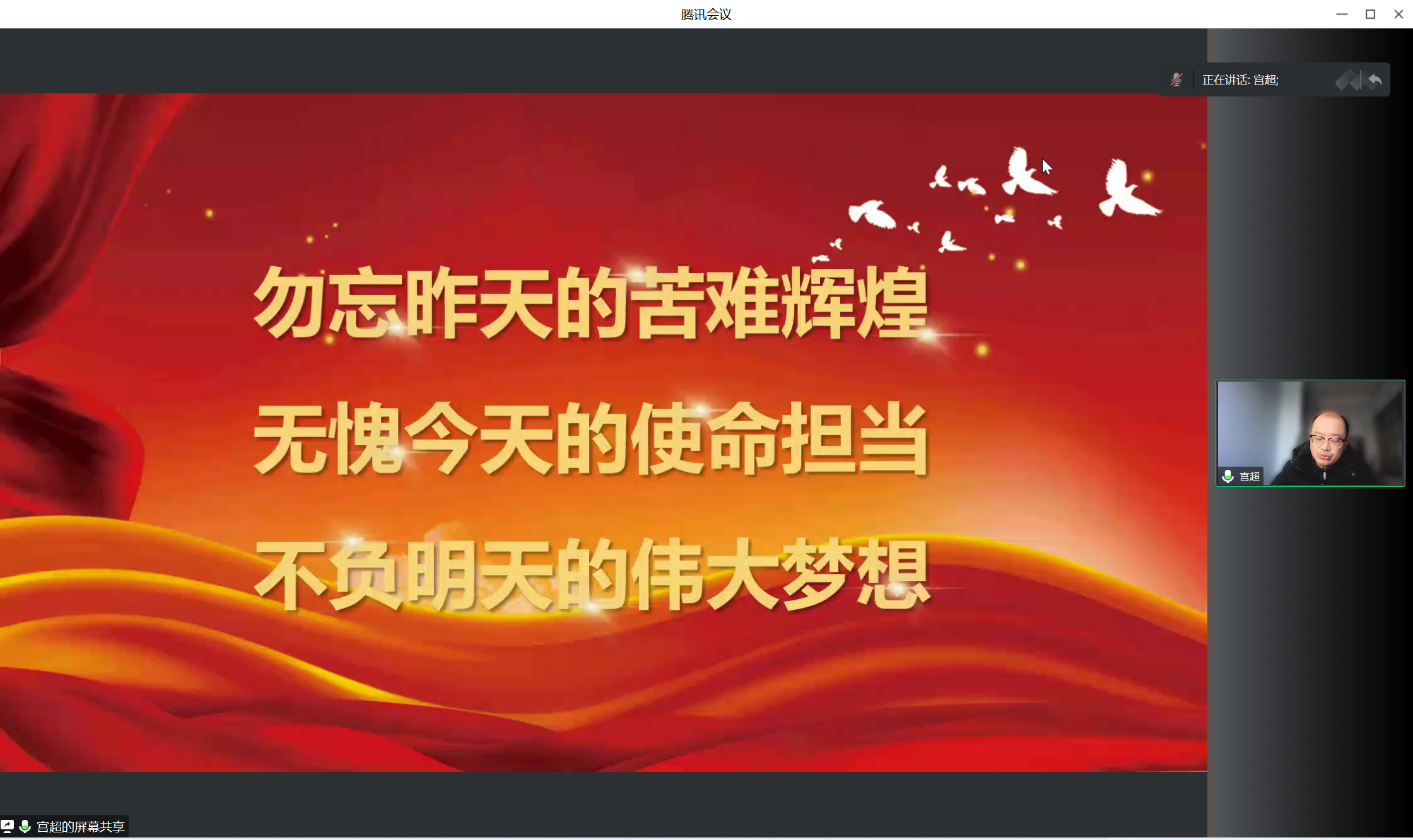 最后,宫书记为我们介绍了“五个必由之路”和五个战略性有利条件,并向各位党员同志们发出“勿忘昨天的苦难辉煌、无愧今天的使命担当、不负明天的伟大梦想”的响亮号召。