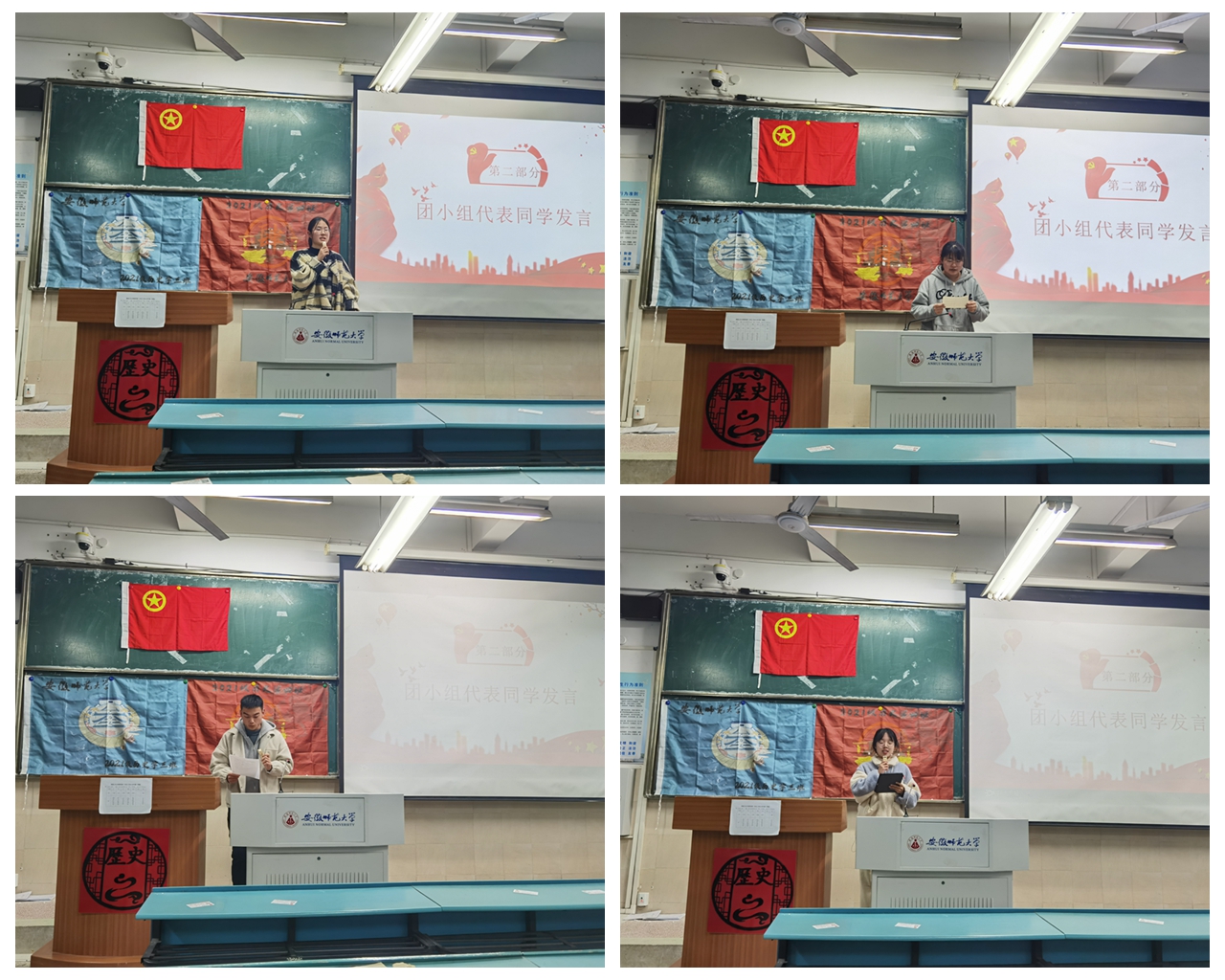 在会议的开始,张文逸老师与同学们分享党的二十大报告全文并解读了报告的部分内容。她希望同学们能够以青春践行二十大,充分发挥青春的能动力和创造力,用奋斗浇灌出最美丽的花,争做“有理想、敢担当、能吃苦、肯奋斗”的新时代好青年。随后,各小组代表上台发言,分别交流了自己心目中的党的二十大精神,结合自己的学习实践阐述心中所想。同学们一致表示,我辈青年,生逢其时,当不负盛世,奋力前行,听党话,跟党走,用青春和热血为党旗添新彩。会议的最后,张文逸老师点评发言,与同学们提问互动,再一次指出了本次主题班会的意义所在,激励同学们厚植爱国情怀,涵养进取精神。