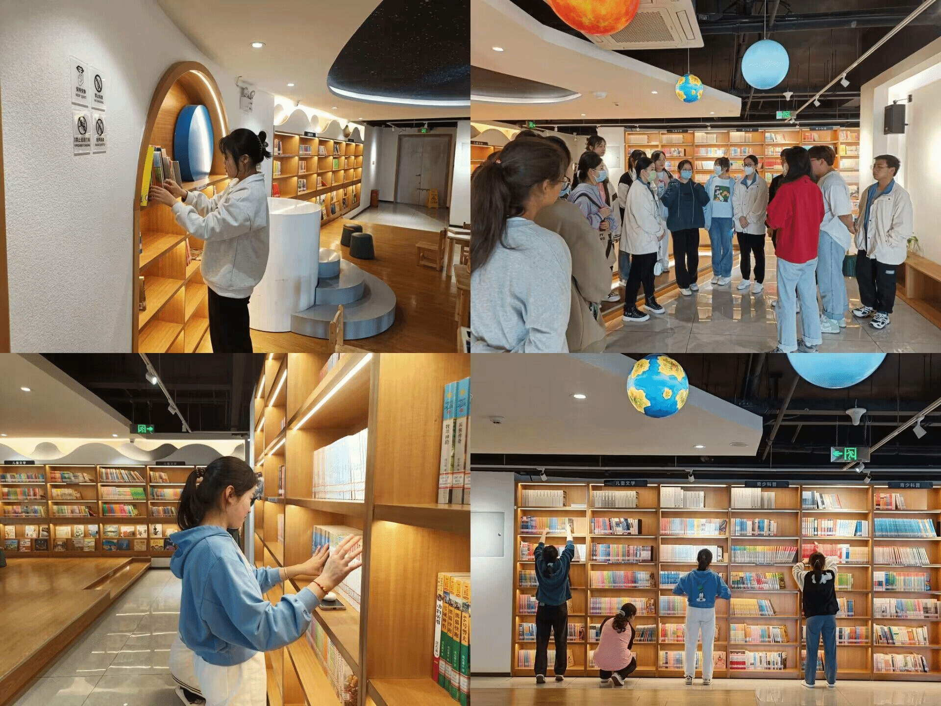 历史学(师范)2班组织同学到天门书院开展志愿服务,主要负责图书的整理与编排。书院中学习氛围浓厚,周围是认真阅读的市民,同学们轻手轻脚地搬书整理,井然有序。