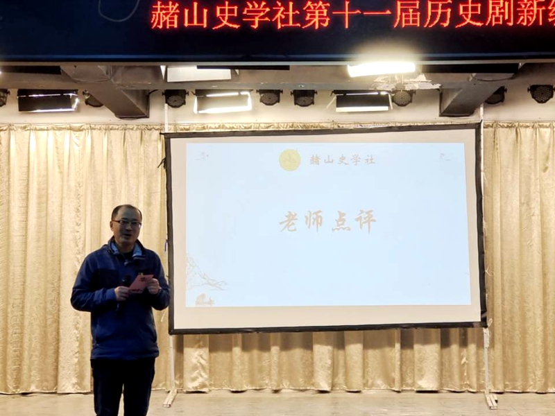 在各个参赛队伍表演结束后,宫超老师进行了点评,他充分肯定了参赛队伍认真的态度、充分的准备和十足的热情,充分表扬了参赛队伍的服化道、演员的台词功底以及表演能力,同时对各个参赛队伍提出了相应的建议,鼓励同学们积极创新,体会好“新编”的含义,在情节上加以改进,注意把握表演时间,鼓励同学们再接再厉,期待同学们更加优异的表现。
