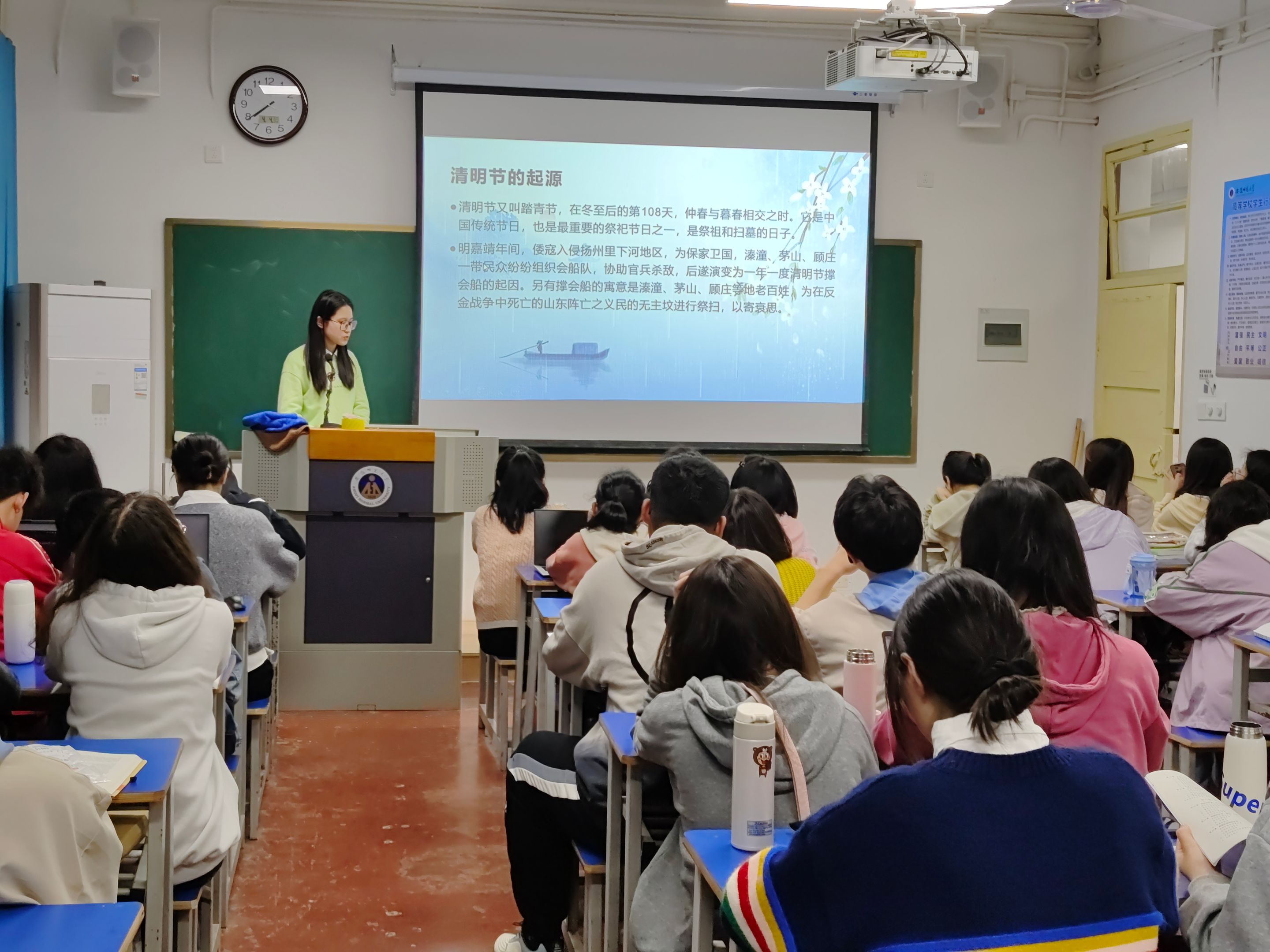 “万物生长于此时,皆清洁而明净。故谓之清明”,钟欣洁首先介绍了清明节的起源,清明节又称踏青节,在仲春与暮春相交之时,是中国传统节日,也是重要的祭祀节日。为引起同学们的重视,提高大家对英雄先烈们的了解,钟欣洁播放了由共青团中央发布的“清明祭英烈”视频,强化了同学们对英烈的敬仰之情。随后,钟欣洁介绍了夏明翰,董存瑞,王稼祥等英雄烈士的感人事迹,他们不顾个人安危,敢于担当,无私奉献……我们追忆逝者,寄托哀思,缅怀英烈,致敬英雄!