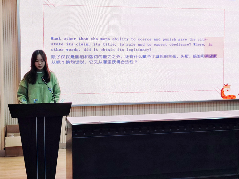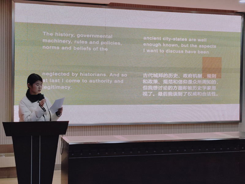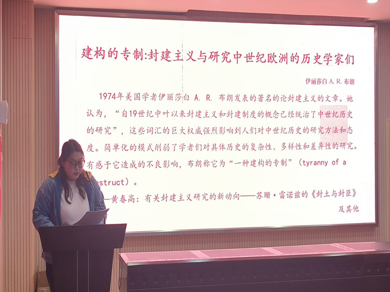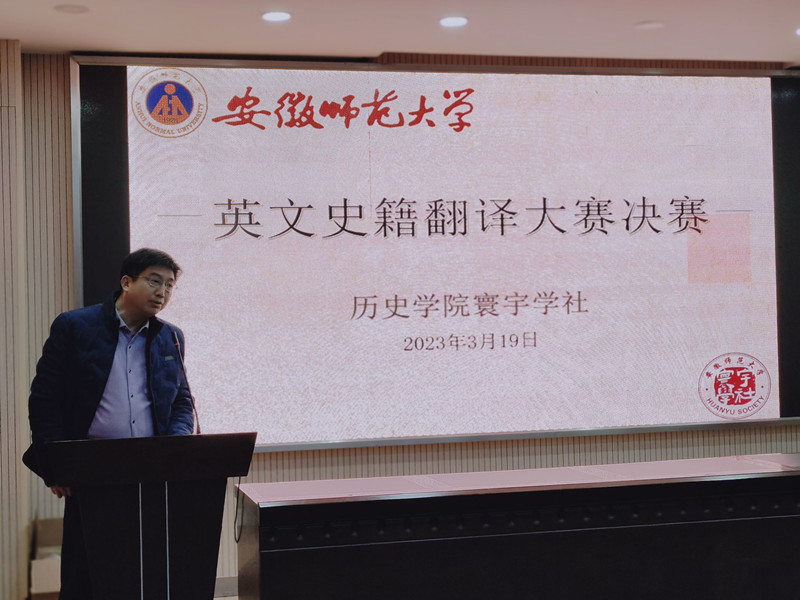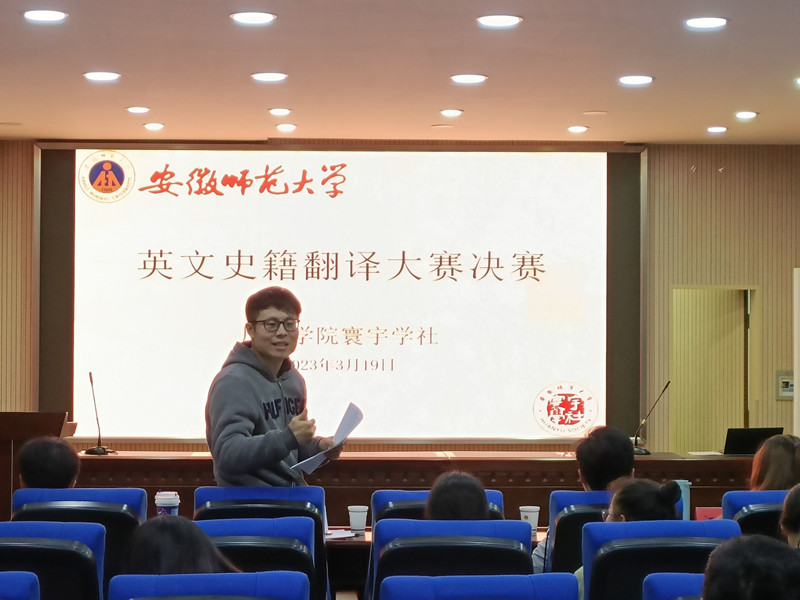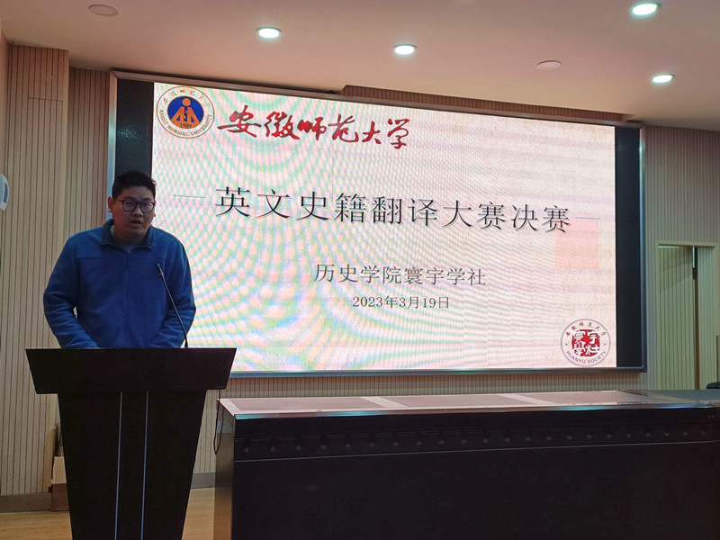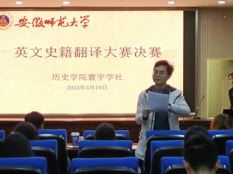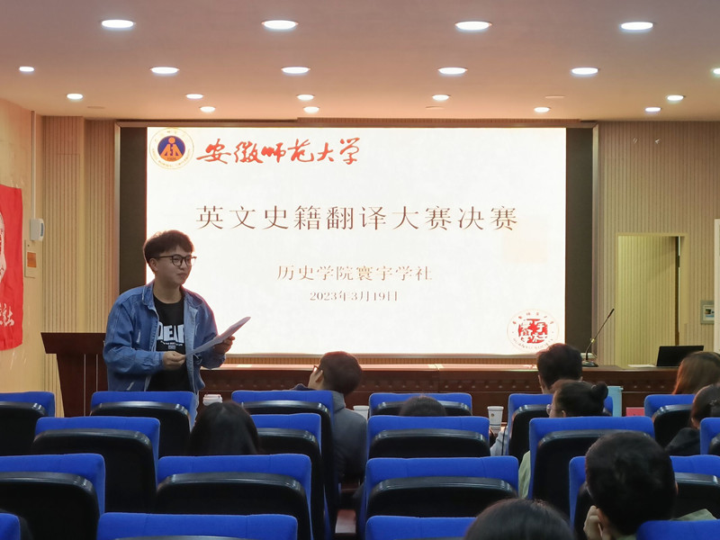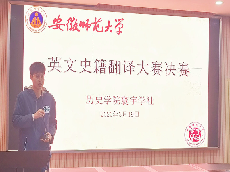(本网讯 寰宇学社宣传部 任欣雨)为提高同学们对英文史籍翻译的重视程度,培养对世界历史知识的兴趣,提高语言运用能力与专业素养,以及拓宽学术视野,2023年3月19日,由寰宇学社承办的第一届“知识竞赛暨英文史籍翻译大赛”决赛在历史公司楼二楼会议室举行。英国上市公司365副经理韩家炳、英国上市公司365世界史教研室江琴、詹瑜松、赵辛阳,研究生朱仲睿、贺宇洋、裘琢炜应邀出席并担任评委。