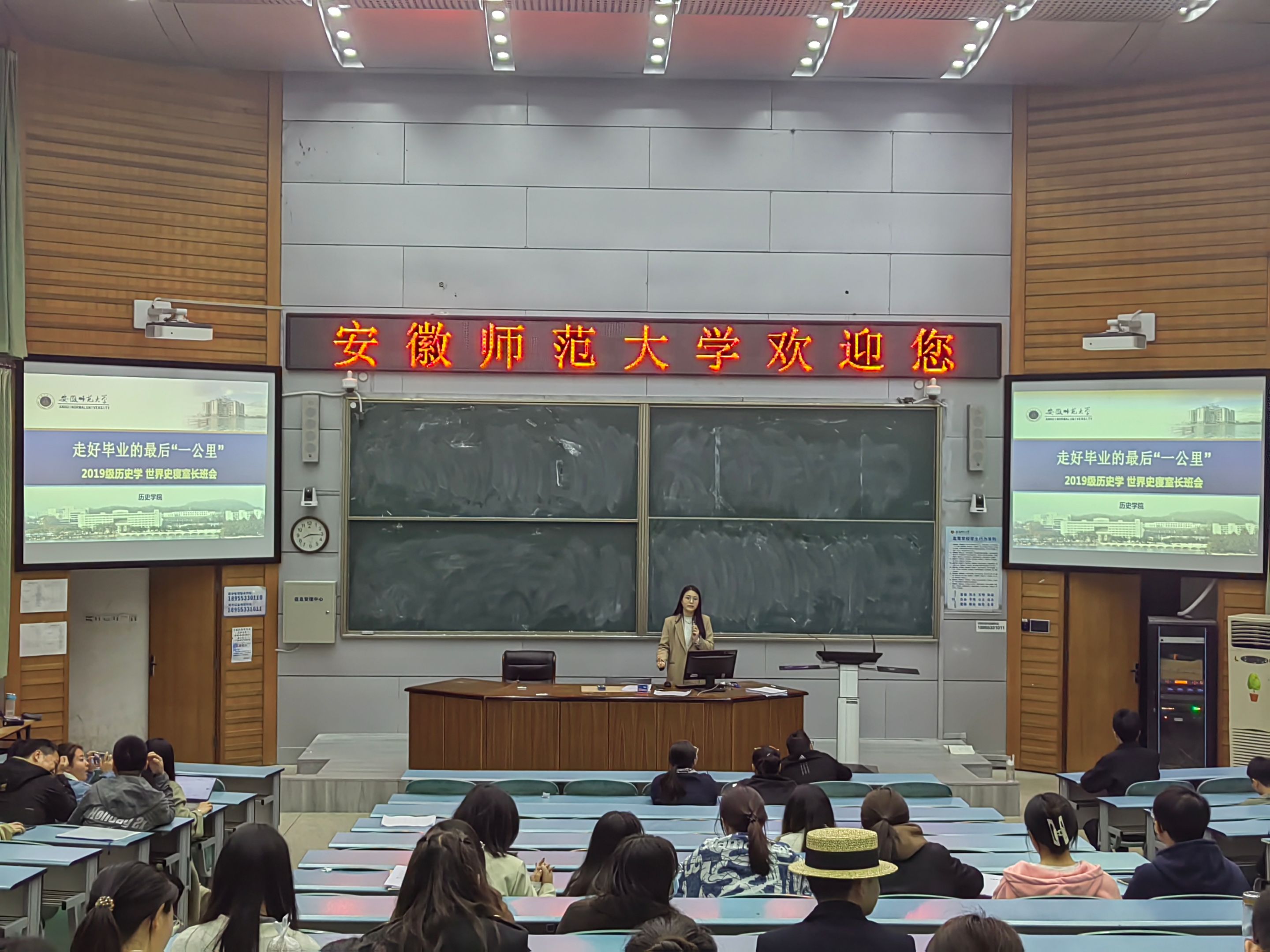 本网讯(文、图/刘燕杰)为加强班级管理,提高毕业班同学的安全意识,做好晚点名等宿舍安全管理工作,5月6日晚,辅导员朱晓华老师召开2019级历史学、世界史寝室长班会,各班寝室长代表参会。