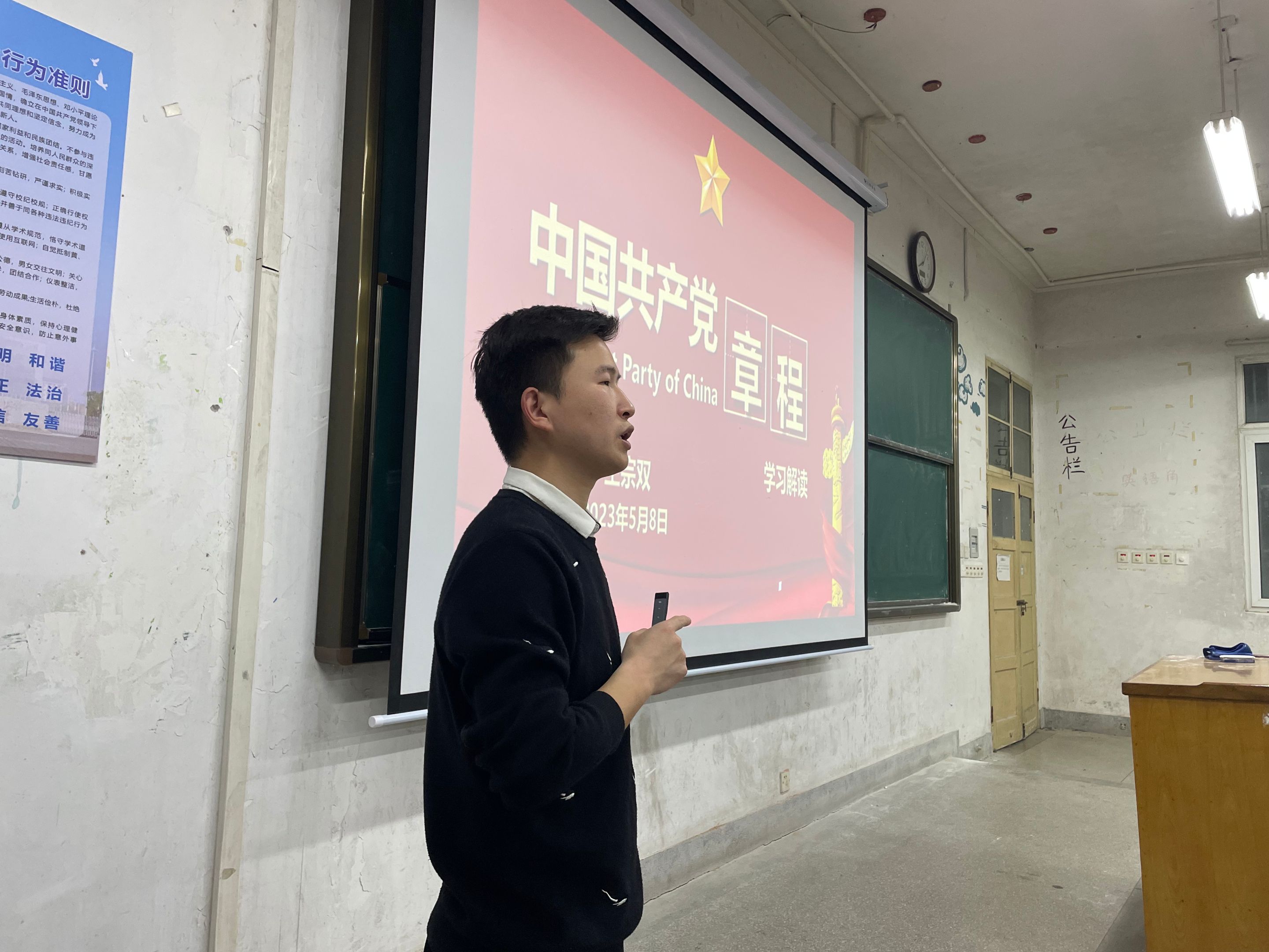 活动开始,王老师就党的知识向同学们提问,调动了同学们参与活动的积极性。紧接着,王老师切入正题,首先,他带领同学们回顾了党的光辉历程以及党章在不同阶段的发展和意义,引导我们在厚重的历史中感受每个阶段作为一名共产党员的历程与光荣,更明白党的使命需要一代代青年去传承与奋斗。接着,王老师深入解读党章内容,阐释党章核心要义,鼓励我们牢记党章要求,以高要求高标准要求自己。最后,王老师勉励我们努力奋斗,争取早日入党。