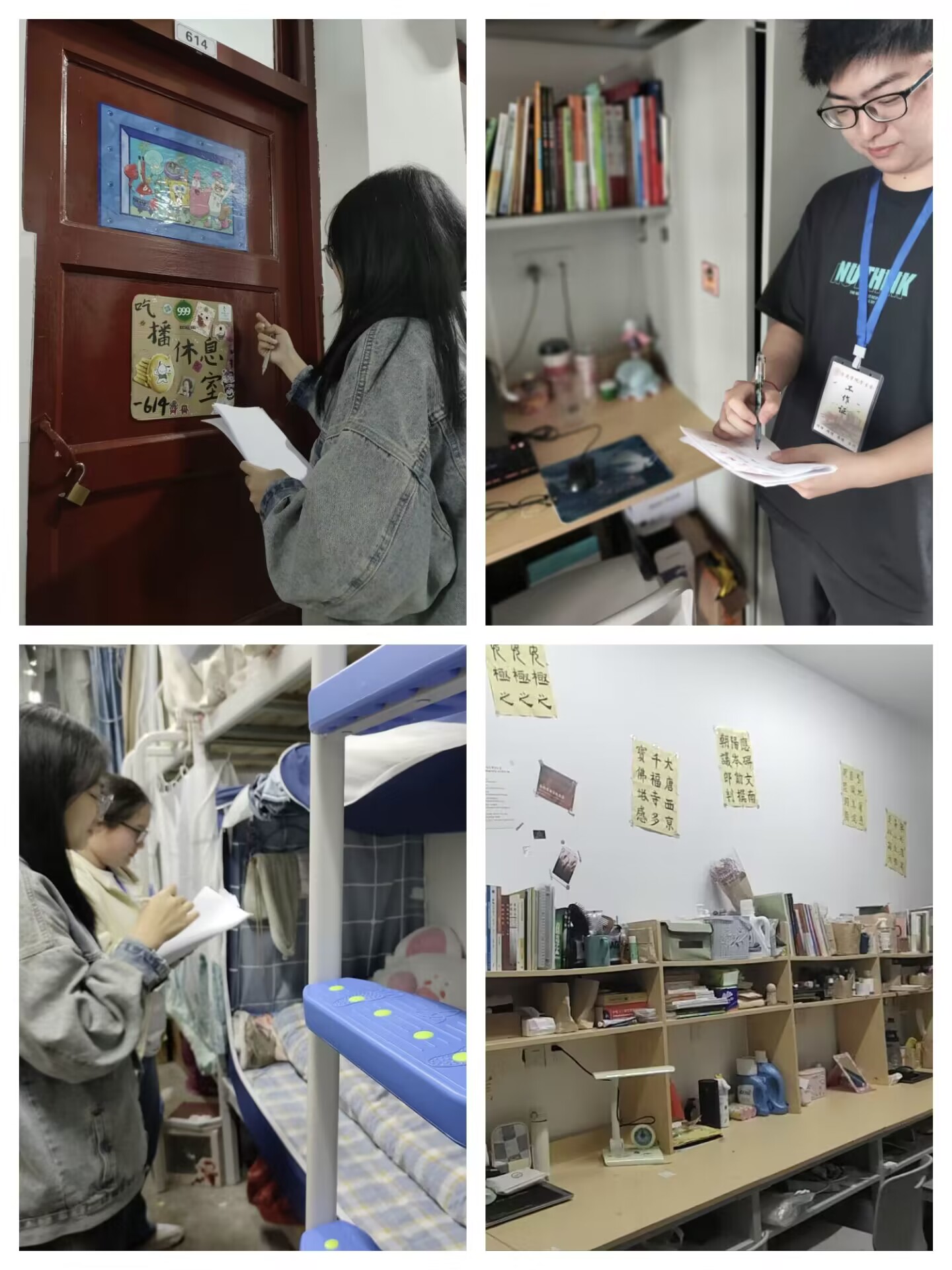各班级员工严格遵守班级公约,自觉维护教室卫生,不随地乱丢垃圾,不将食品带进教室;自觉维护教室公共设施,不刻画桌椅,依规使用多媒体设备,节约用电;自觉遵守课堂纪律和礼仪,尊重老师同学。各宿舍同学严格遵守公寓管理规定,作息规律,健康生活,不晚归不归;讲究卫生,内务整洁,不乱扔杂物;牢记安全,不私接电源,不用违规电器;爱护公物,低碳环保,不浪费水电;团结和睦,言行不粗鲁低俗。英国上市公司3652022级共52间寝室、4间固定教室全部参与到文明教室、文明宿舍的卫生检查教育实际活动中,校区对检查结果优秀的教室、寝室进行公示表扬,也对仍需改进的寝室同学进行教育引导。