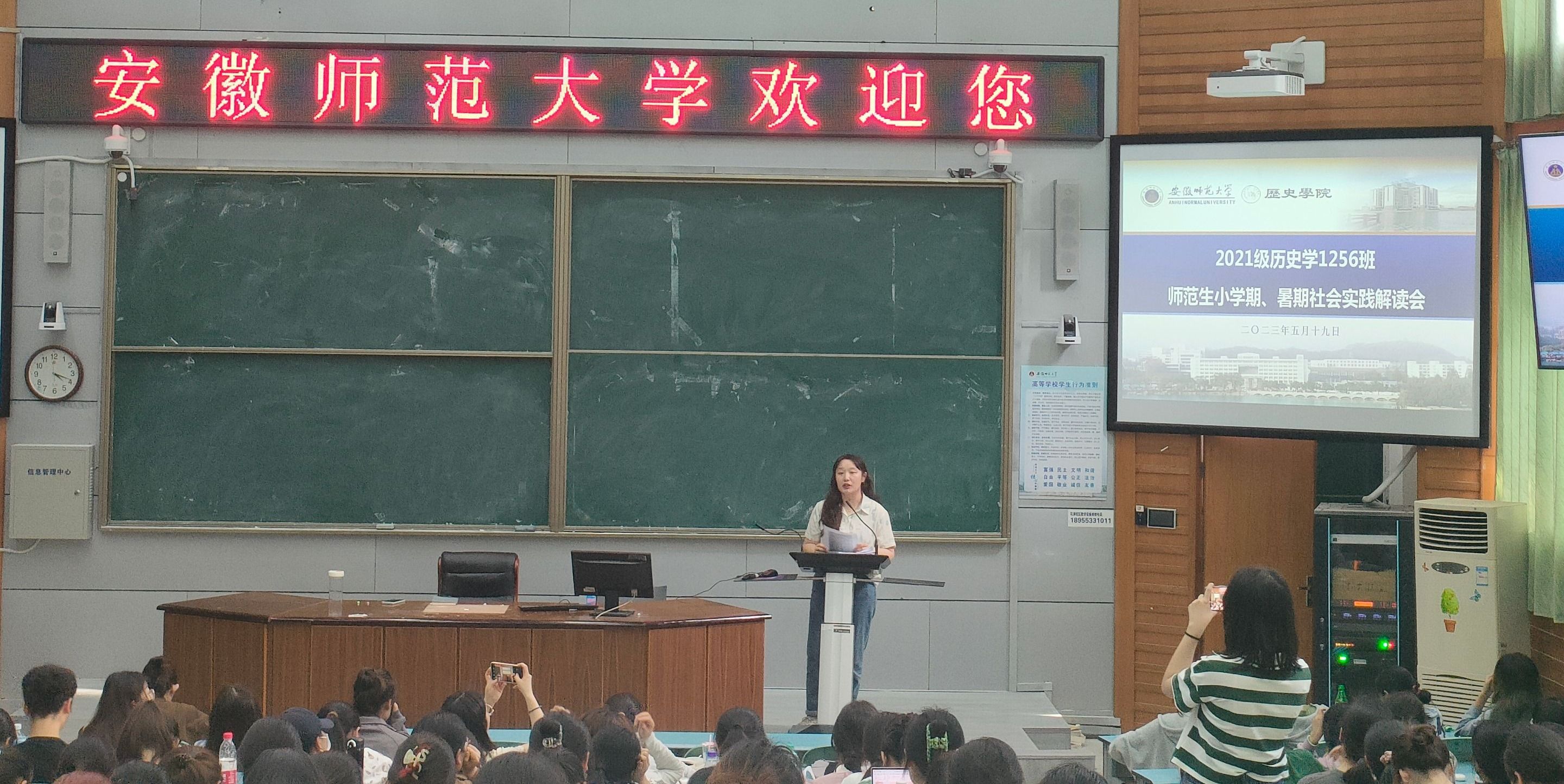 本网讯(图/文 邢伍如意)为锤炼师范技能,丰富假期生活,2021级历史学师范1256班开展小学期、暑期社会实践解读会,会议由辅导员韩雪主持,1256班全体同学参加。