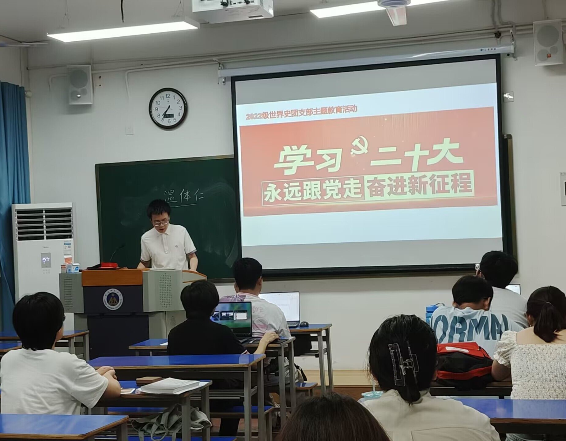 本网讯(文/杨景程 图/肖云桢)2023年是党的二十大战略部署的开局之年,5月28日晚,2022级世界史班开展以“党的二十大战略部署”为主题的团日活动,号召同学们继续学习二十大相关知识,永远跟党走,奋进新征程。本次活动由世界史班团支书杨景程同学主持,班级全体团员参加。