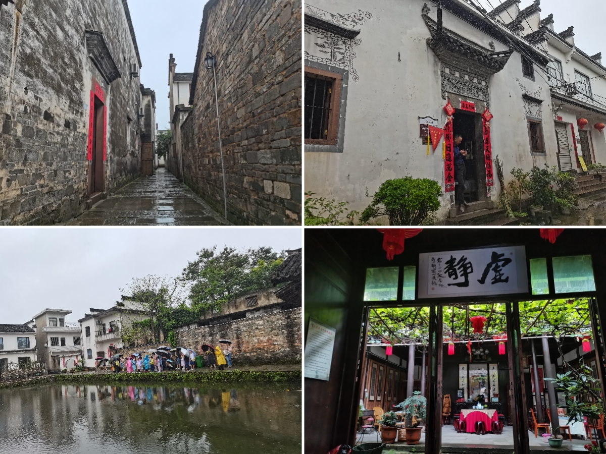 上午,团队前往西溪南村,分两组进行实地考察。团队随机采访了数位当地村民并参观了潘爷爷的民居。从潘爷爷那得知,太平军和湘军在此一战之后,当地民居三分之二被毁,这处民居建于这次战乱之后,解放以后改为公社,自己就在社里工作。2000年左右,个人花了两万元从公交社手里买下来,房子由公宅变成私宅,后来又花了大概20万元进行装修。房子保存完好,变动不大,内部依循老房子的布局和构造,只是在原来的基础上加固了一番,像房梁、柱子等材料还是原有的。后院还有一面明朝遗留下来的单墙,历经风雨一直屹立不倒。据调研,西溪南的古民居数量很多,大多已经由屋主进行过改建,要么供自己居住,要么以开民宿、开餐馆、开商店等形式加以利用,村内游人如织。从外部和内部来看,这类古民居经受岁月的侵蚀较少,稍作装饰就能为之一新。少数原汁原味的古民居内部基本都已倒塌殆尽,多为政府或富商购买,屋主已迁至别处。政府挂牌保护的古民居不多,有的被市政府列入“百村千幢”工程,有的被区政府列为“特色历史建筑”。政府对当地的古民居实行严格的管控,村民要想改动自家古民居得到上面的批准。团队发现西溪南依托历史文化和自然生态两个资源禀赋,将厚重典雅的民居变成古色古香的餐厅、民宿、商店,打造具有徽州特色的旅游服务业态,让古民居充满人气,让古村落焕发活力。