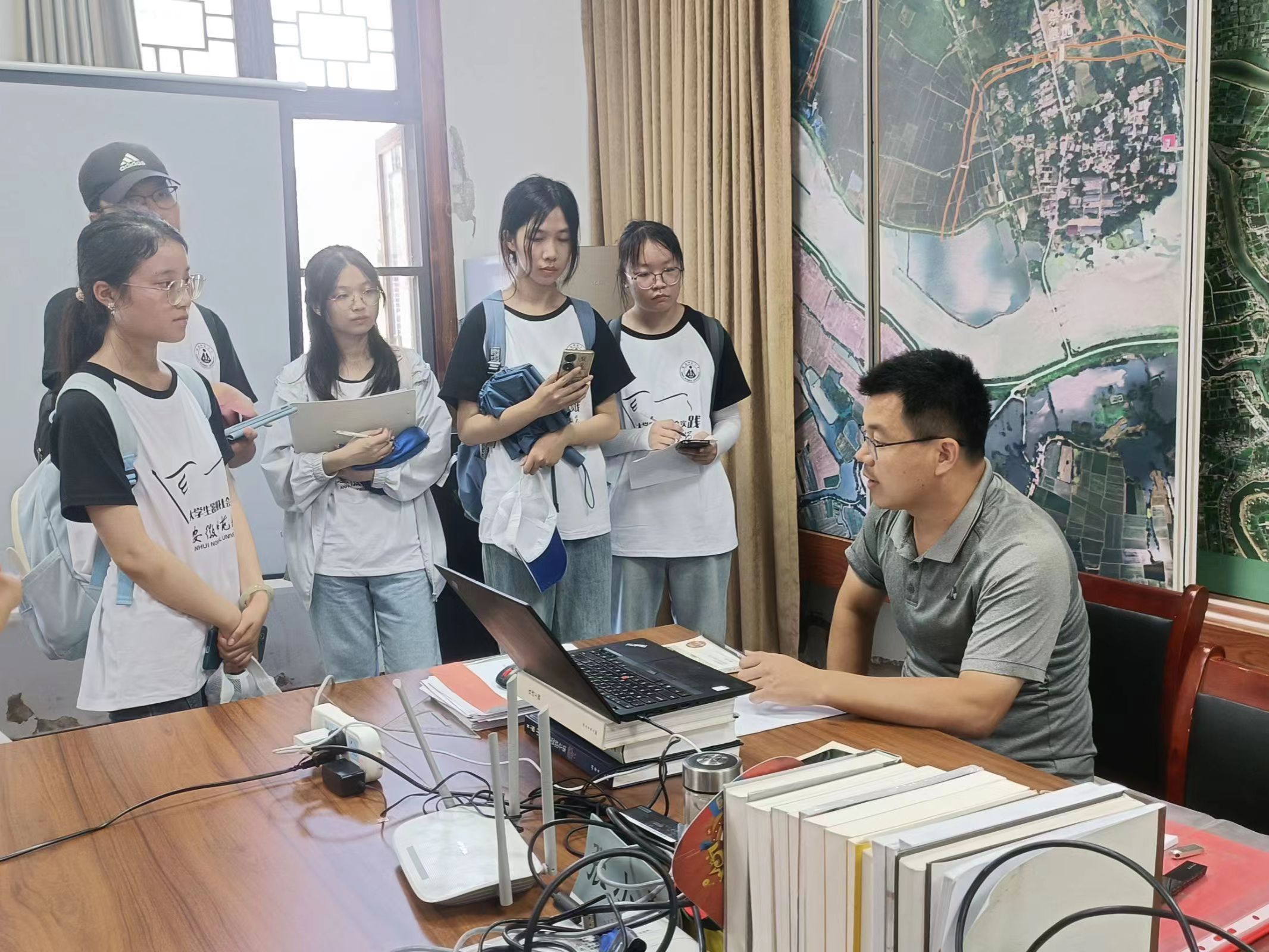 团队成员跟随张小雷老师走进他的办公室,开始了对张小雷老师的访谈。大家围在张小雷老师办公桌边。当谈及凌家滩遗址与良渚文化、红山文化的关系时,张小雷老师表示,中国良渚遗址现被列入世界遗产名录,知名度较大,宣传力度较大,参与发掘的专家学者多,成果丰硕。红山文化于100年前被发现,分布在内蒙古中南部至东北西部一带,面积较大,参与人数多,加之近年来持续挖掘和宣传,整体影响力扩大。然而,作为中国史前三大玉文化之一的凌家滩遗址,发现年代偏晚,目前考古工作仍在进行中,整体宣传方面力度较弱。