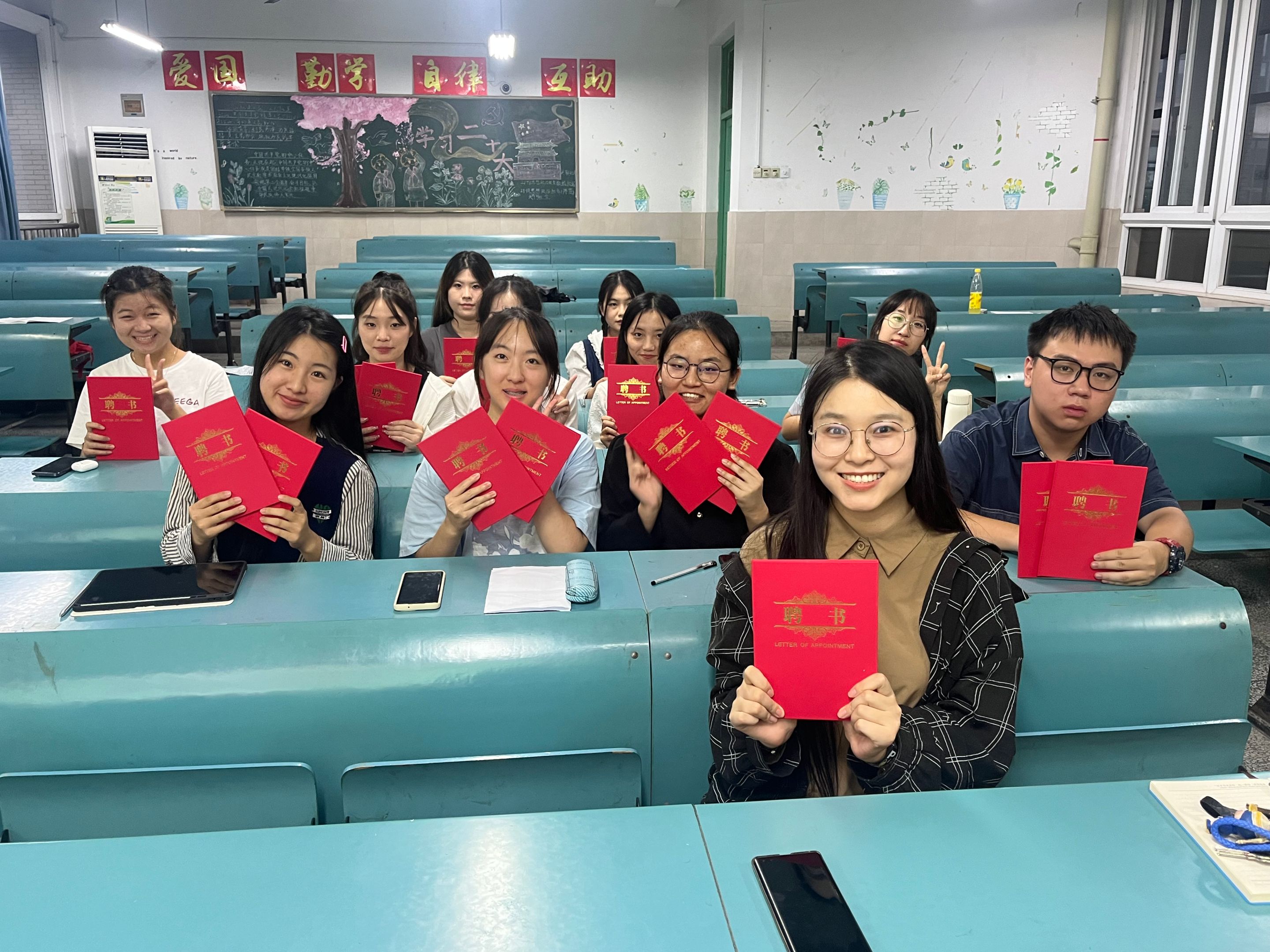 换届完成后,由辅导员朱晓华老师为原班委和新任班委颁发聘书并进行总结发言。朱老师首先肯定了上届班委的努力和贡献,同时就班级学习态度与班级建设方面做了针对性总结。在学习态度方面,朱老师认为在大学的学习更加不能松懈,希望同学们能保持学习的热情,提高学习效率,树立明确的目标,争优争先,不断进步。在班级建设方面朱老师对新一届班委的成立表示热烈的祝贺,并提出了新的要求以及期望,部署了接下来的工作,并且相信在接下里的一年里我们能携手共进,共创辉煌。
