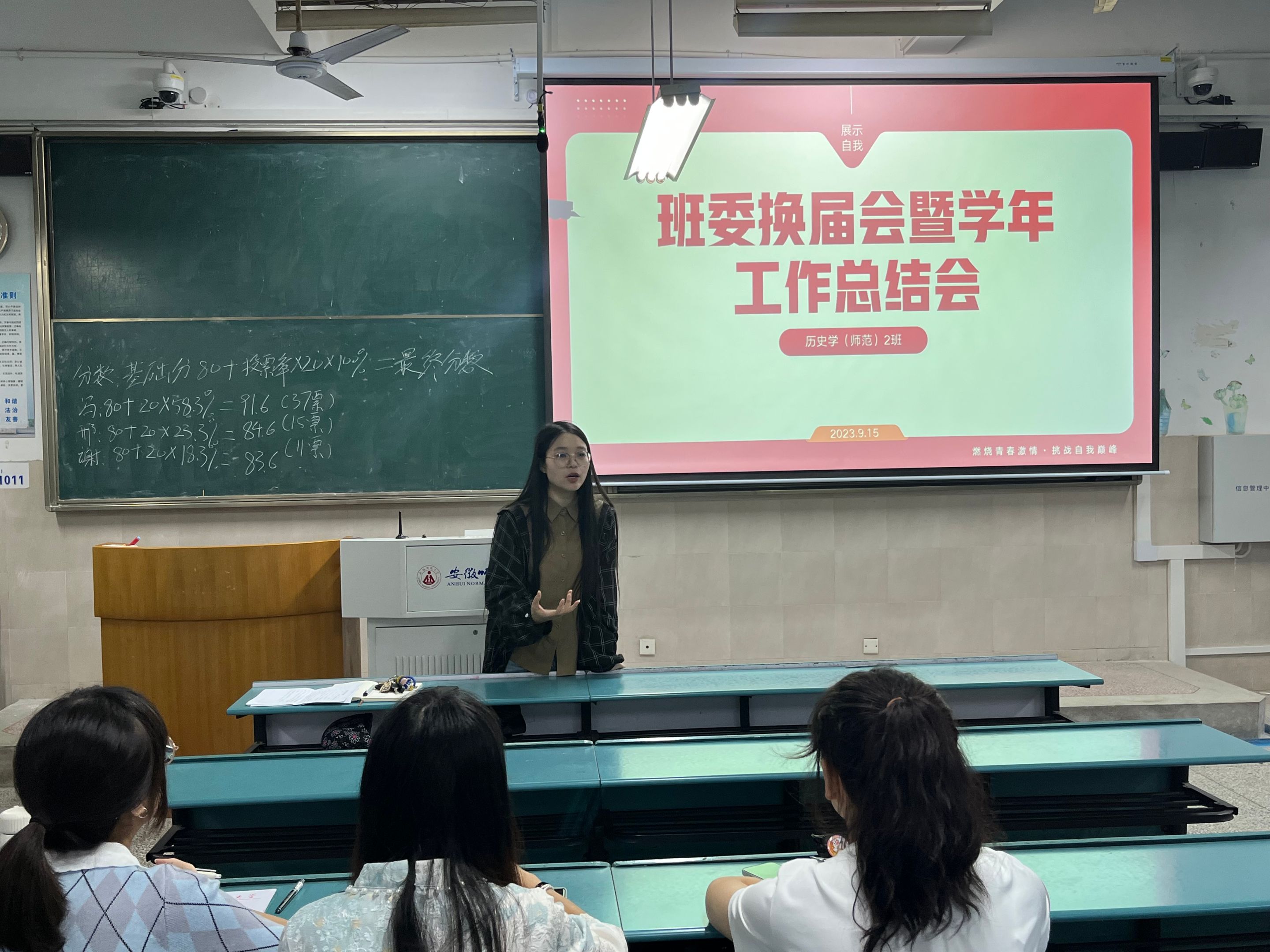 本网讯(图/文梁婉婷)随着大一学年的结束,班委换届工作如期来临。2023年9月15日,在原班委的组织下,2022级历史学师范2班在2020203教室开展班委换届会暨学年工作总结会。会议由班长陈光栋主持,辅导员朱晓华老师及2班全体成员出席本次会议。
