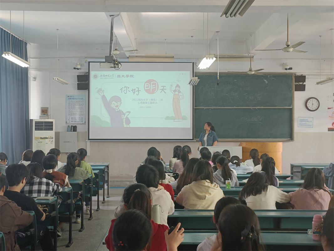 本网讯(图/王秋畅 文/张晨阳)为迎接即将到来的10·25老员工心理健康宣传日,引导同学们关注自身心理健康,2023年10月18日上午11时35分,2022级历史学(师范)三班于英国正版365官方网站花津校区2020403教室开展了一次心理健康主题班会。本次班会由班级心理健康委员张晨阳同学主持,辅导员朱晓华老师和班级全体同学参加。