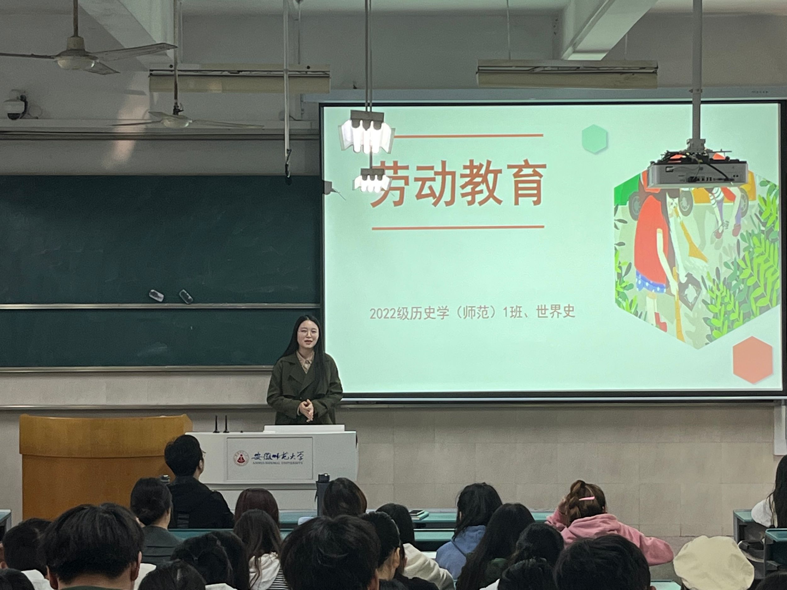 为了更加深入地了解劳动的意义和价值,培养劳动意识,树立劳动观念,促进员工德、智、体、美、劳的全面发展,22级历史学(师范)1班和世界史全体同学于2023年10月16日到20日参与劳动实践活动,并于22日下午3点在2010101教室召开劳动实践教育主题班会。本次会议由辅导员朱晓华老师和詹瑜松老师共同主持。