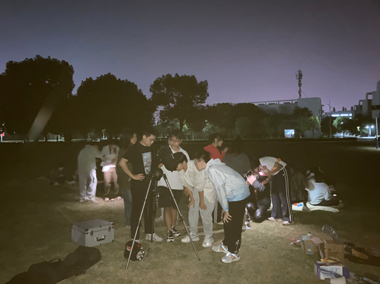 本次活动由辅导员詹瑜松老师提供观测器材和观星知识指导,班长宋子豪和端木婧雯同学带领其他班委协助组织此次活动。在活动中,班级同学积极观测星体,而后自发弹唱、跳舞、做游戏,这些娱乐活动使得此次班会更加活泼有趣。