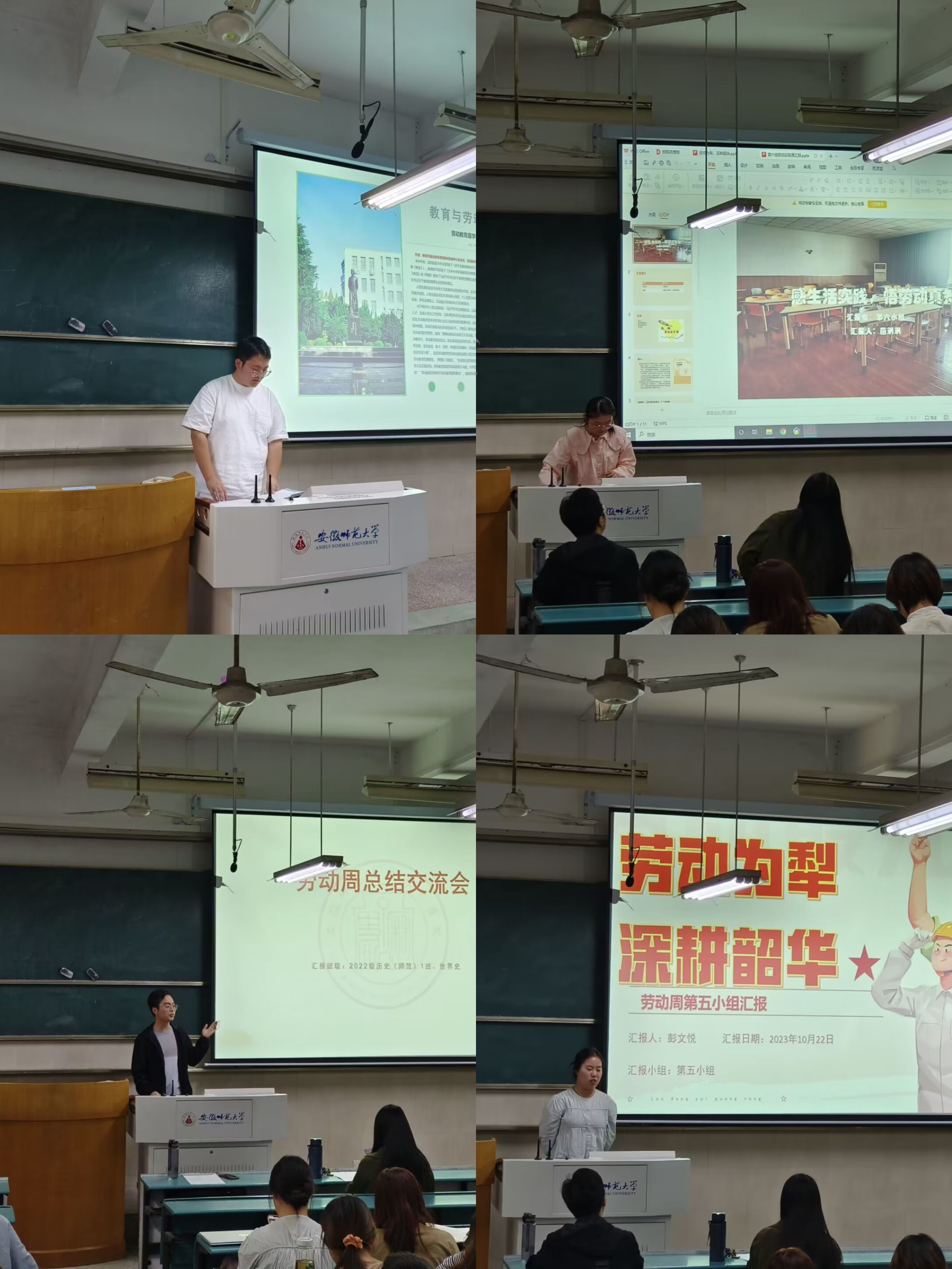 六位同学汇报完毕后,朱老师和詹老师分别进行总结发言,号召同学们积极投身于未来更广阔的劳动实践的天地中去。最后,詹老师宣布会议圆满结束。