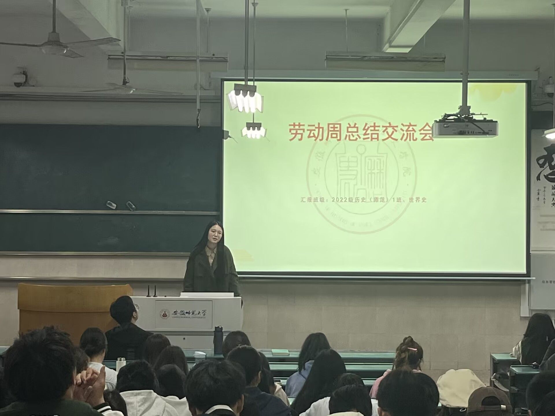 本网讯(图/文 汤泽毓)经过一周的劳动实践周,2022级世界史1班与历史师范1班的同学们团结协作、辛勤劳动并积极参与运动会赛事与志愿活动,圆满完成了劳动周的一系列安排。为此,两班于10月22日下午共同开展劳动周总结交流会,分享劳动实践经验,交流、学习劳动精神,推动校园劳动文化建设。詹瑜松老师和朱晓华老师参加总结交流会。