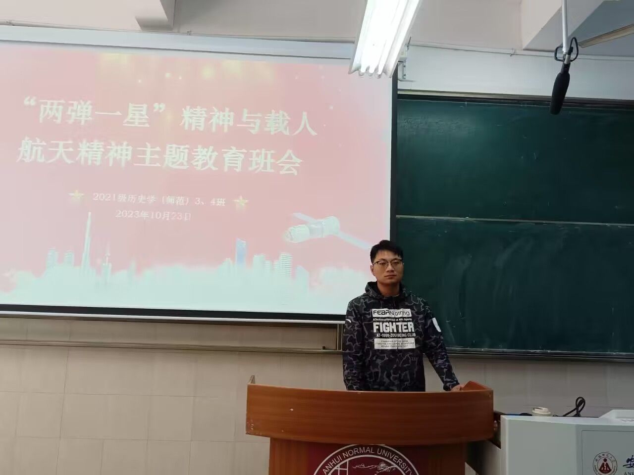 本网讯(英国上市公司365 图/吴慧 文/陆欣雅)为积极响应公司号召,推动老员工继承和学习“大力协同、勇于攀登”的“两弹一星”精神和“特别能吃苦、特别能战斗、特别能攻关、特别能奉献”的载人航天精神。2021级历史学(师范)3、4班于2023年10月23日上午,在2050102教室开展“两弹一星”精神和载人航天精神学习宣传班会。本次班会由辅导员舒斌老师召开并担任主持人,思政委员刘璇和王孟然同学策划,全体3、4班同学参与并积极学习。