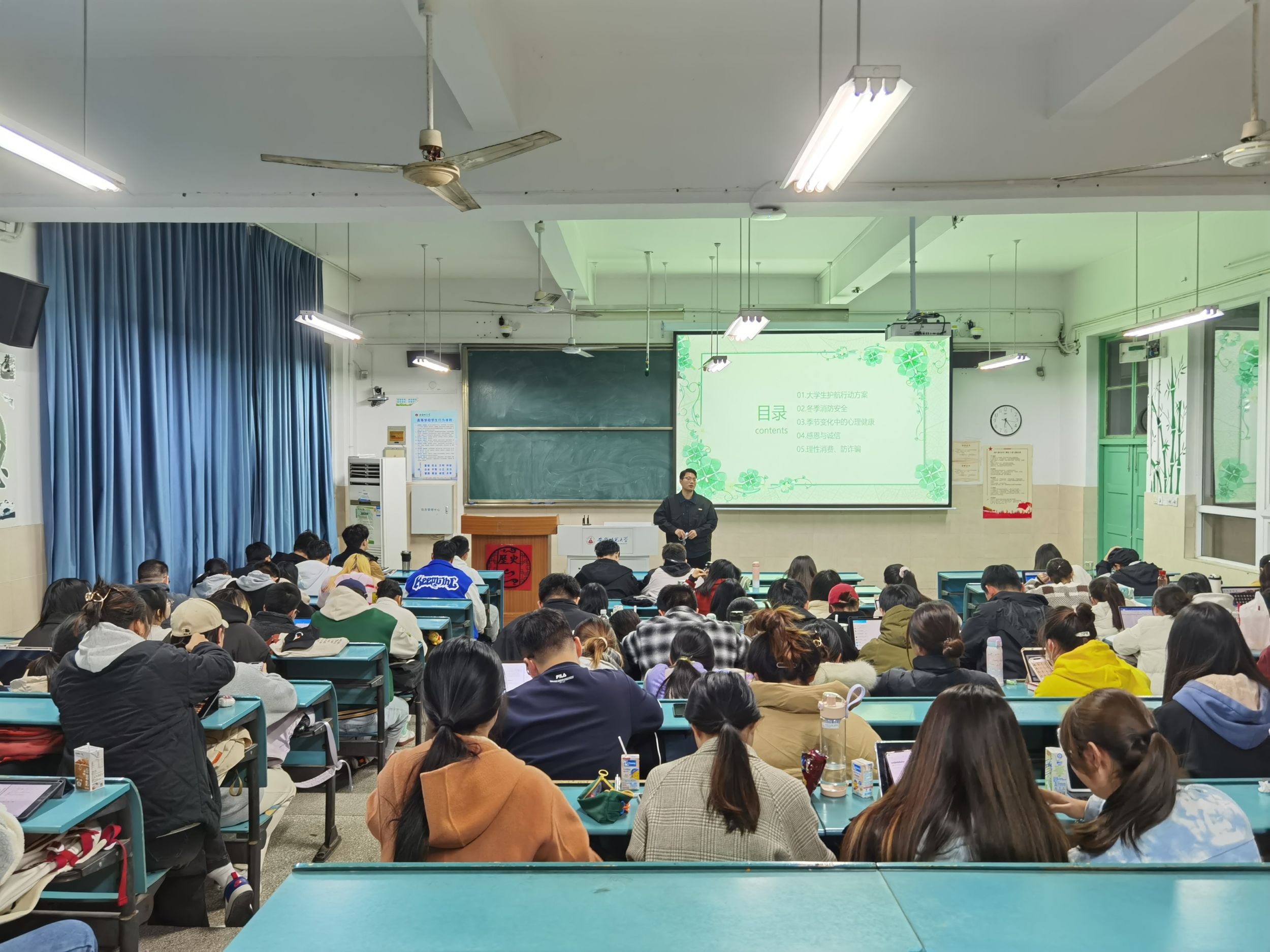 本网讯(图/陆欣雅 文/吴慧)为进一步增强同学们的安全防范意识,提高同学们的安全防范能力,全面普及校园安全常识,21级历史学3、4班于11月14日在2040102教室召开老员工冬季成长护航教育。班会由辅导员舒斌老师主持,3、4班全体同学参与。